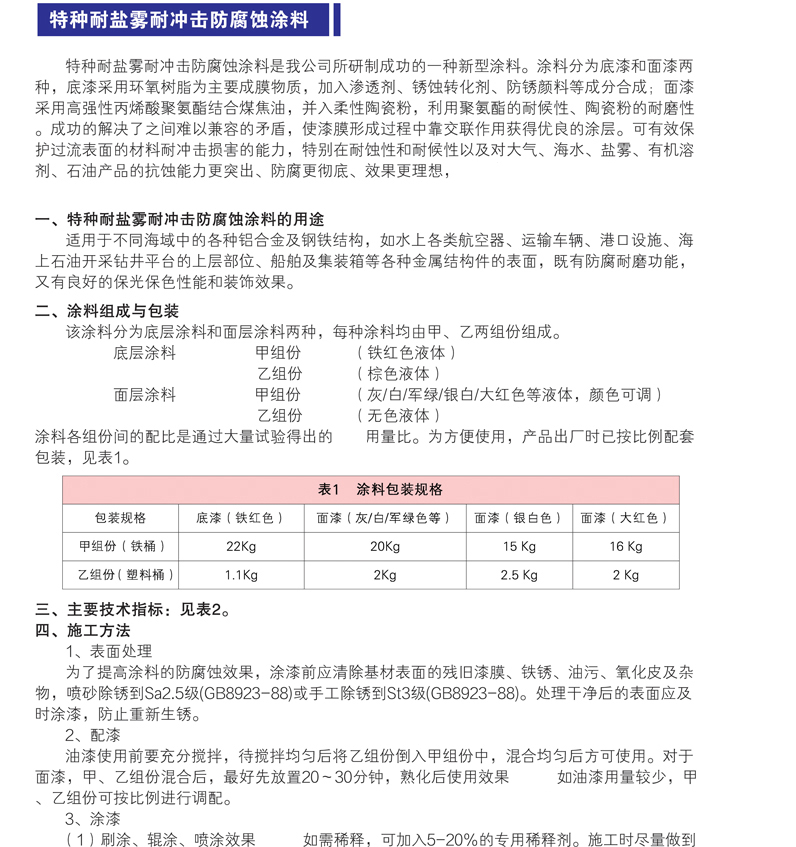 產(chǎn)品分類(lèi):各種鋼結(jié)構(gòu)用防腐蝕涂料、鉆井平臺(tái)用防腐蝕涂料、艦船用防腐蝕涂料、沿海地區(qū)用防腐蝕涂料、國(guó)防軍工用防腐蝕涂料、特種防腐蝕涂料