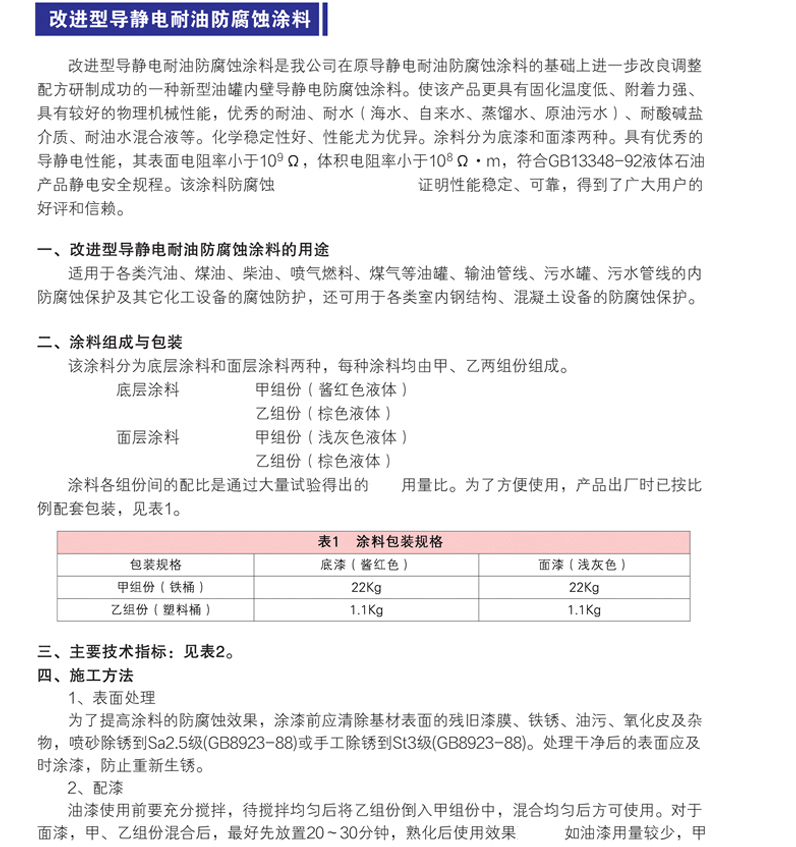 產(chǎn)品分類:油罐內(nèi)壁、管內(nèi)壁用防腐蝕涂料、各種鋼結(jié)構(gòu)用防腐蝕涂料、化工用防腐蝕涂料