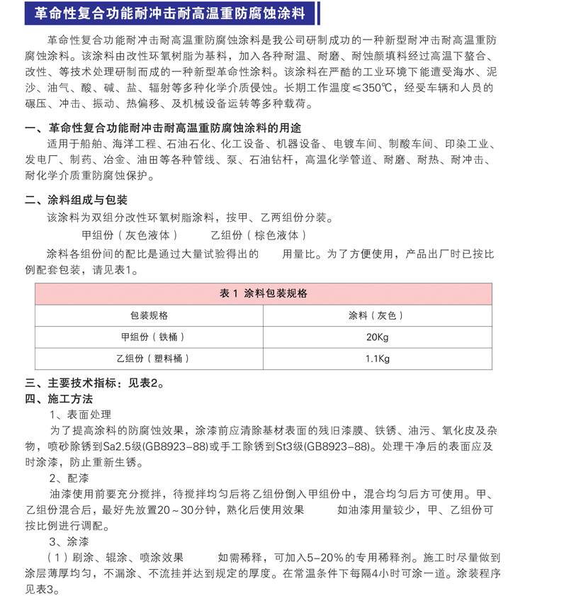 適用于船舶、海洋工程、石油石化、化工設備、機器設備、電鍍車間、制酸車間、印染工業(yè)、發(fā)電廠、制藥、冶金、油田等各種管線、泵、石油鉆桿,高溫化學管道、耐磨、耐熱、耐沖擊、耐化學介質重防腐蝕保護。