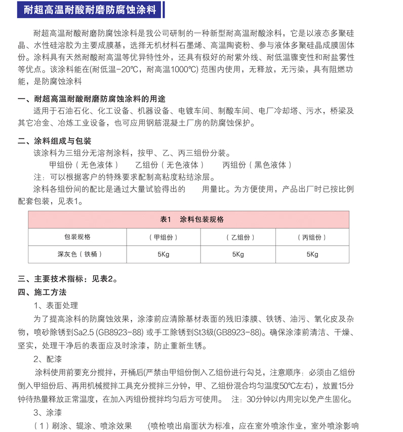 適用于石油石化、化工設(shè)備、機(jī)器設(shè)備、電鍍車間、制酸車間、電廠冷卻塔、污水,橋梁及其它冶金、冶煉工業(yè)設(shè)備,也可應(yīng)用鋼筋混凝土廠房的防腐蝕保護(hù)。